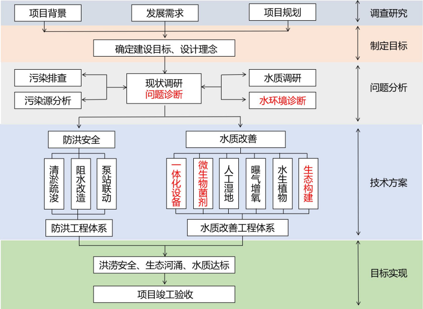 4)技术集成:系统整理小微流域河涌治理技术体系,形成以微生物技术为依托,结合一体化应急处理设施、原位底泥修复、水生态修复等工艺措施的组合技术集成,有效提升治理效果,节约成本,解决小微河涌治理中的痛点和难点问题,提升组合技术的适用性。
